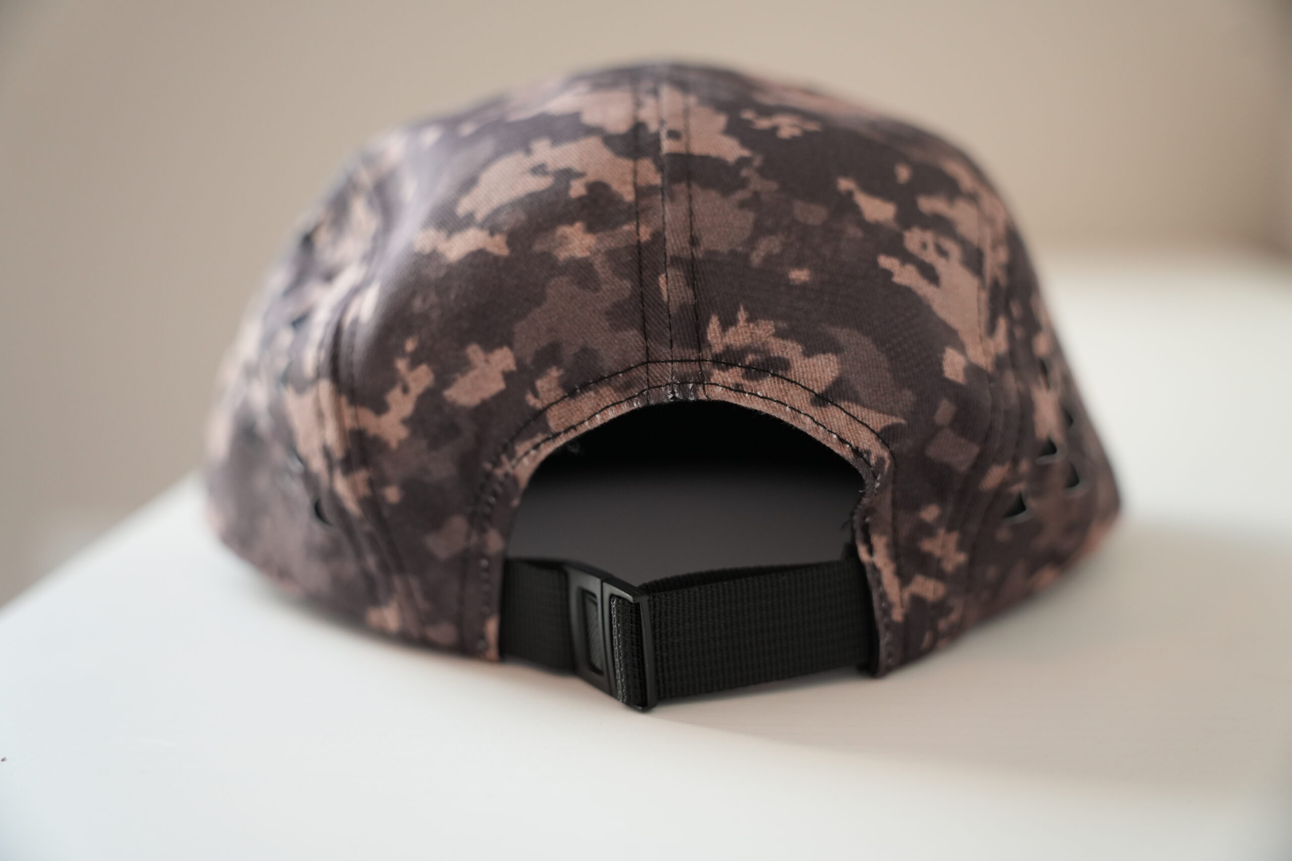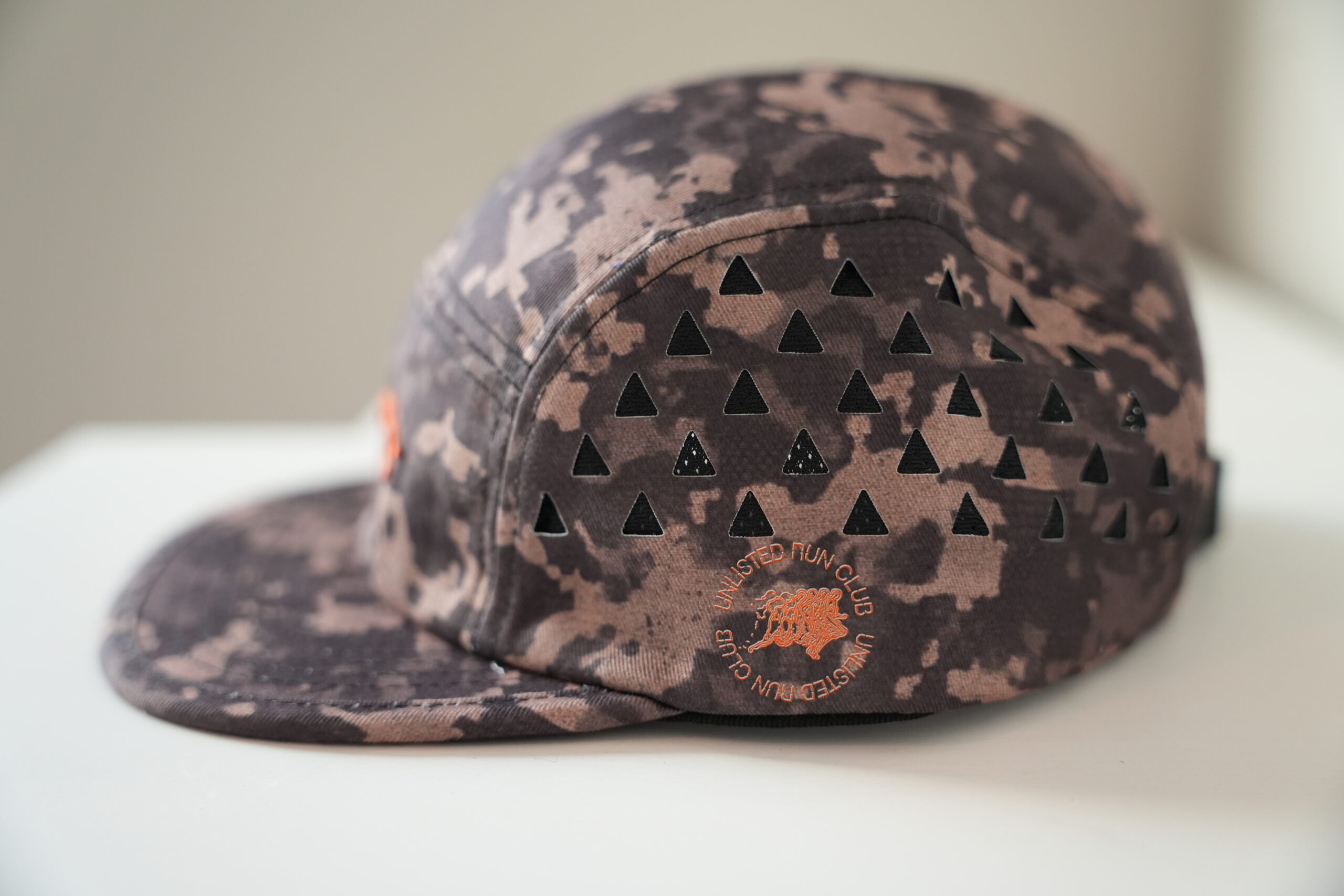 A lightweight five panel performance running hat featuring a sleek digital camo pattern and bold URC logo. Designed for everyday wear and training with a clean, modern look that works on runs or off the clock.